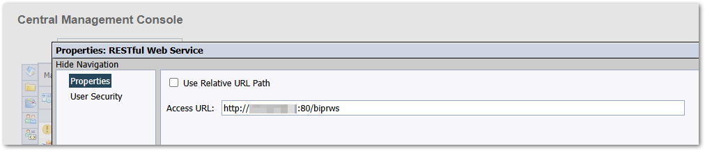 CMS Server URL - This consists of the CMS Host name and the port that needs to be hit in order to use the RESTful Web Services. To find out what this value should be, please log into the Central Management Console and go to “Applications” and go to the “Restful Web Service” application. The value for this will be the portion of the “Access URL” up to the end of the port. For example, a value could be http://BIPW08R2:6405