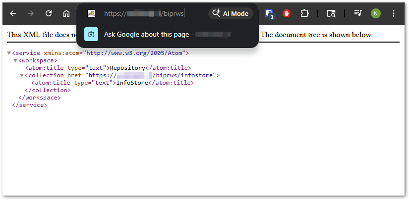 For my test system, my RESTful Web Service URL is http://[my-server]:80/biprws as seen here…