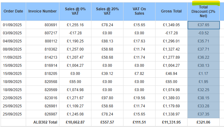 I have a report that after calculating VAT amounts, calculates the rebate value. This was a set calculation of adding up all the with or without VAT calculations for the total and then multiplying by 0.03 for a 3% rebate. But now in the case of one specific product code, that calculation needs to be multiplying by 0.02 (2%) instead. All the other product codes remain at 3%. I did this with a simple if statement based on the product code.