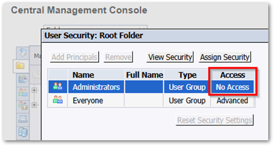 Upon investigation, I find that on my destination system the Administrators group has No Access to the Root Folder (Top-Level Access > All Folders)…